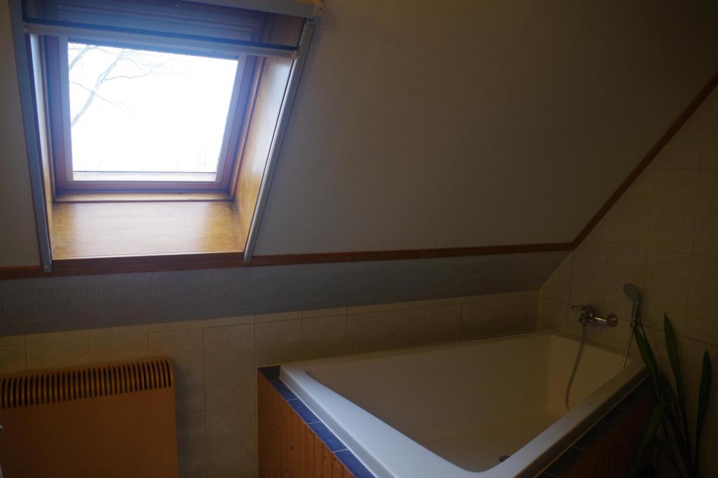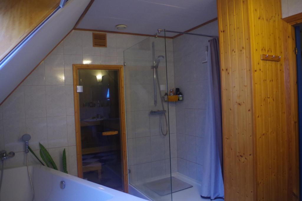 De woning is in 2009 voorzien van een ruime badkamer met toilet, twee wastafels, een douche en een (tweepersoons!) ligbad en een sauna.